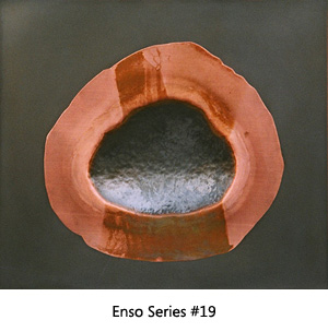 I assemble metals in layers, some are cut through, others are smoothed, bent, joined to each other or joined to themselves by welding and epoxies. My work is a type of repousse', one of the oldest metal smithing techniques in the world. Copper is a malleable metal that is softened or annealed by heating it to "red" color. In this state it can be "pushed back" by hammering. I choose to hammer the softened copper into an "edge die" which is the outline of the shape cut out in a board. The copper is fastened to the board and gradually hammered down through the cut out hole. The 3-dimensional quality of the shape is a result of the hammering process which slowly work hardens the metal as the hammering precedes. The perimeter or circumference of the hole effects and influences the 3-dimensional shape. While I am hammering the copper, I respond to the increasing stresses in the metal as the work hardening progresses. Some pieces take several annealing and hammering repetitions.