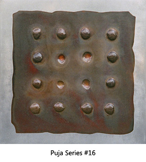 If the hammered piece is aback layer, it is carefully fitted to the opening in the front sheet. This makes it seem like the form is pushing through the flat surface. I use concave receding elements and convex emerging ones as well. Sometimes three or four pieces are joined together, at other times the work is done all in one piece of metal. These techniques allow me to manifest my vocabulary of forms in a variety of methods.